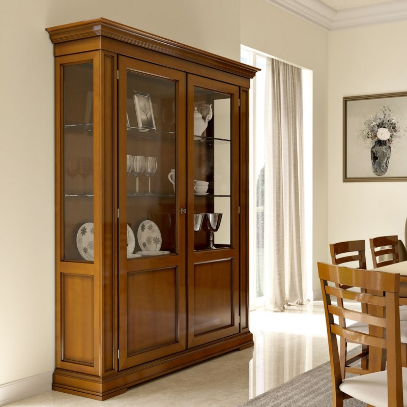2-türige Vitrine im klassischen Stil mit glatter Platte