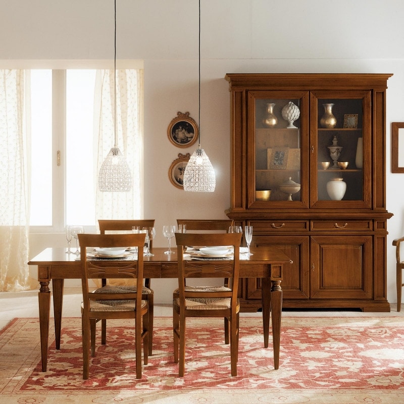 Die klassischen Möbel dieser Home-Set-Home-Kollektion haben ein solides und traditionelles Erscheinungsbild, leicht dekoriert, aber nicht durch die Rahmen der Türen und Schubladen beschwert. Die Verarbeitung von Massivholz, die Schnitzereien und die Rahmen lassen uns das handwerkliche Können und die Liebe zum Detail schätzen, die in der Herstellung von Möbeln dieses Niveaus stecken.