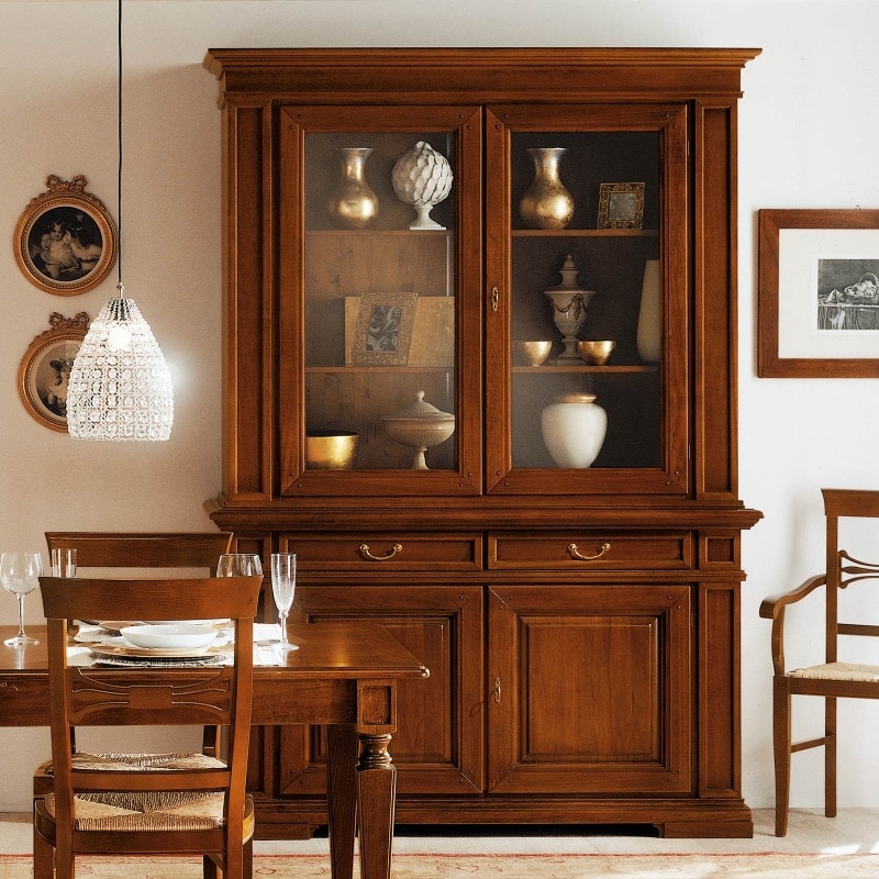 Klassische Vitrine mit zwei Korpussen und einem traditionellen und soliden Erscheinungsbild