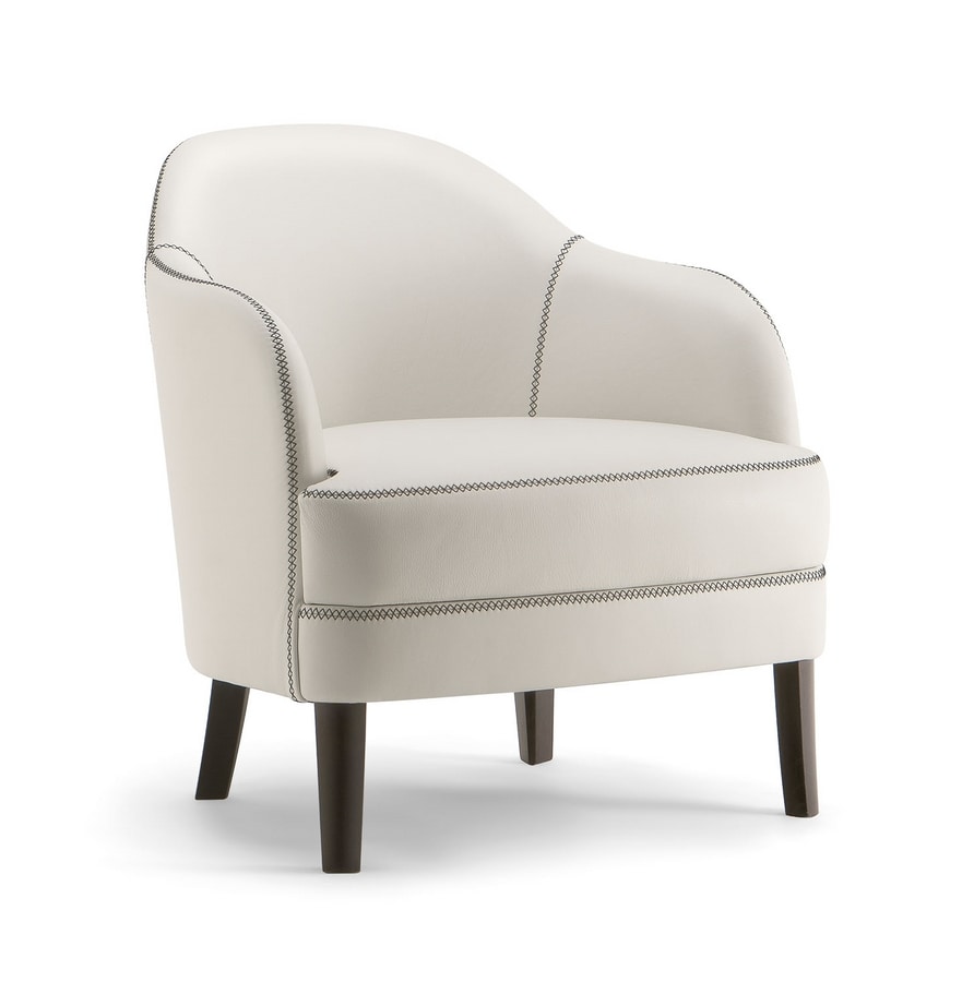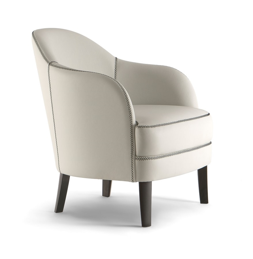 Der voll gepolsterte Chicago Lounge Chair eignet sich perfekt für schicke und anspruchsvolle Umgebungen und zeichnet sich durch sanfte Linien, Komfort und Design aus. Der handgefertigte Absteppstich, der sich vom Farbton der Polsterung abhebt, erzeugt eine auffällige Linie entlang der Konturen. Die Massivholzbeine bereichern den bequemen und stilvollen Sitz. Dank der großen Auswahl an hochwertigen Stoffen und Holzbeizen ist dieses Produkt in hohem Maße anpassbar.