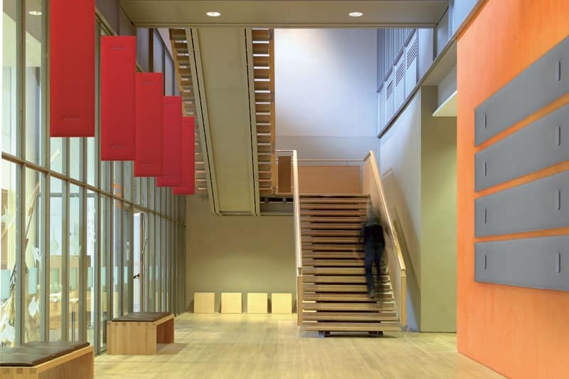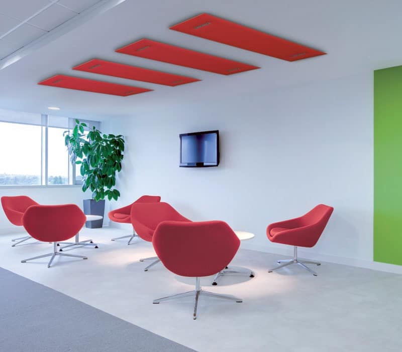 Schallabsorbierendes Paneel mit Polyester-Füllmaterial und Polyester-Bezug aus Trevira CS®-Material. Die Grundlage der patentierten Snowsound® Technologie besteht aus der Verwendung von Materialien unterschiedlicher Dichte. Diese Materialien absorbieren die unterschiedlichsten Frequenzbereiche und ermöglichen trotz geringer Materialstärke eine Verbesserung der Raumakustik. Die Mitesco Paneele sind, ohne Rahmen oder Nähte, aus einem Stück gefertigt, besonders leicht und passen sich an jedes Ambiente an.