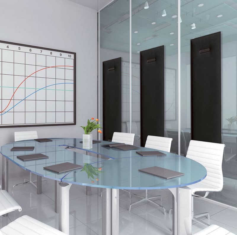 Schallabsorbierendes Paneel mit Polyester-Füllmaterial und Polyester-Bezug aus Trevira CS®-Material. Die Grundlage der patentierten Snowsound® Technologie besteht aus der Verwendung von Materialien unterschiedlicher Dichte. Diese Materialien absorbieren die unterschiedlichsten Frequenzbereiche und ermöglichen trotz geringer Materialstärke eine Verbesserung der Raumakustik. Die Mitesco Paneele sind, ohne Rahmen oder Nähte, aus einem Stück gefertigt, besonders leicht und passen sich an jedes Ambiente an.